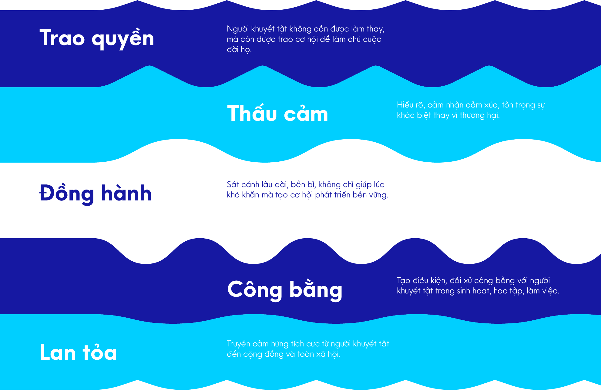 • Người khuyết tật được khẳng định giá trị, tôn vinh và hòa nhập môi trường nhân văn, sáng tạo.